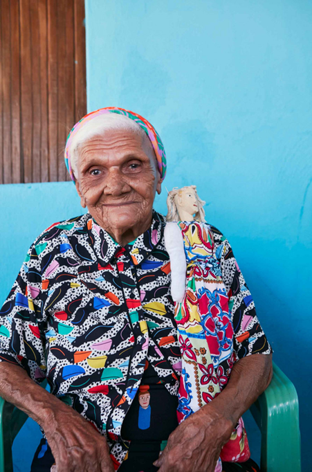 Dona Morena segura uma de suas bonecas (Foto: Bazar, 2023)