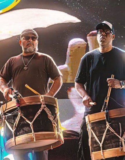 Nação Zumbi tocando com as alfaias de maracatu. Foto: divulgação / Instagram: @nacaozumbioficial