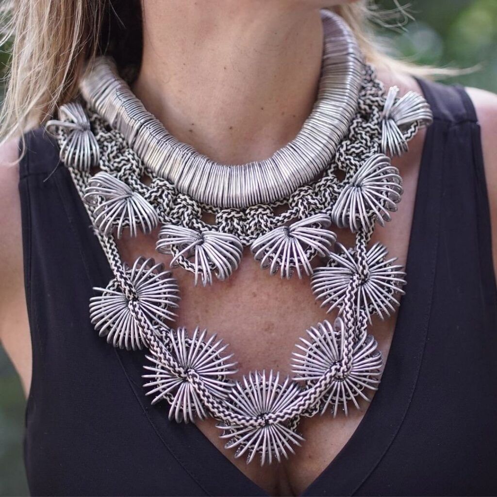 Colares feitos com lacre de latinhas. Produtos do Projeto social Artesa Design de Luiza Bomeny | Foto: Acervo Pessoal Instagram, 2024