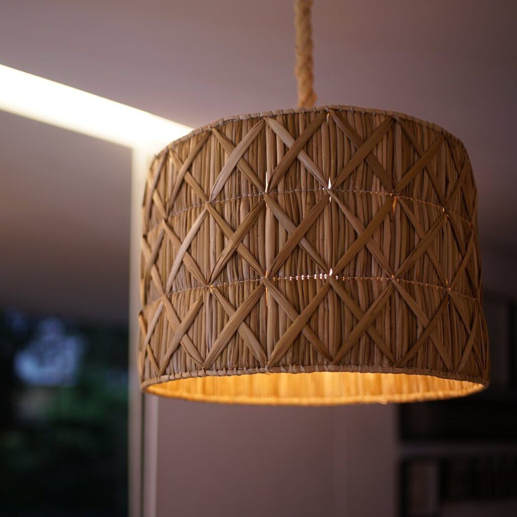 Luminária feita à mão de taboa, uma fibra natural e colares feitos com lacre de latinhas. Produtos do Projeto social Artesa Design de Luiza Bomeny | Foto: Acervo Pessoal Instagram, 2024