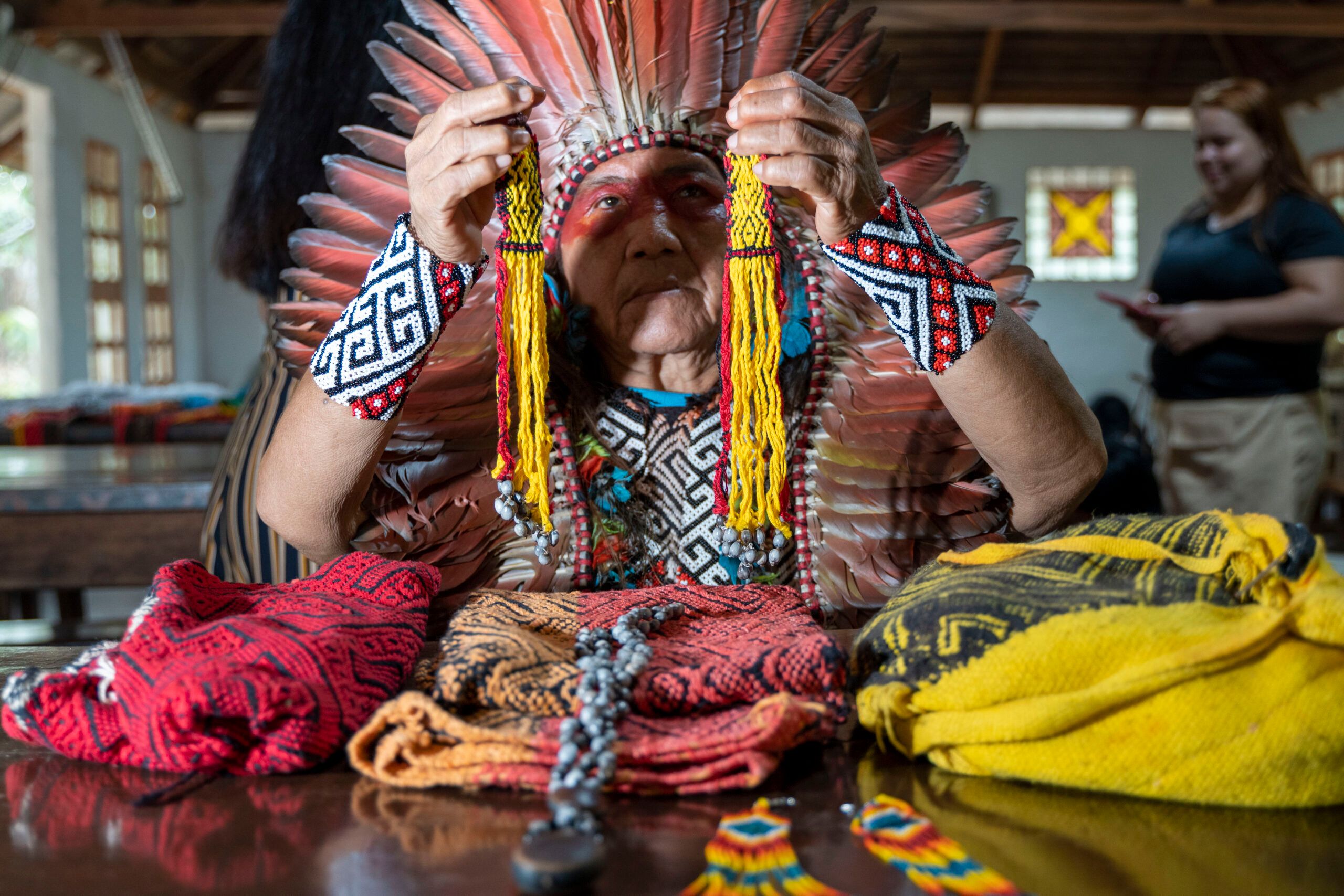 Sua filha, Sandy Yusuro, reforça que o trabalho vai além da produção de adornos: “A gente luta pelos nossos direitos. Aqui isso é mais forte por conta das mulheres. Lutamos pela independência financeira e pelo fortalecimento das indígenas Sateré-Mawé”.