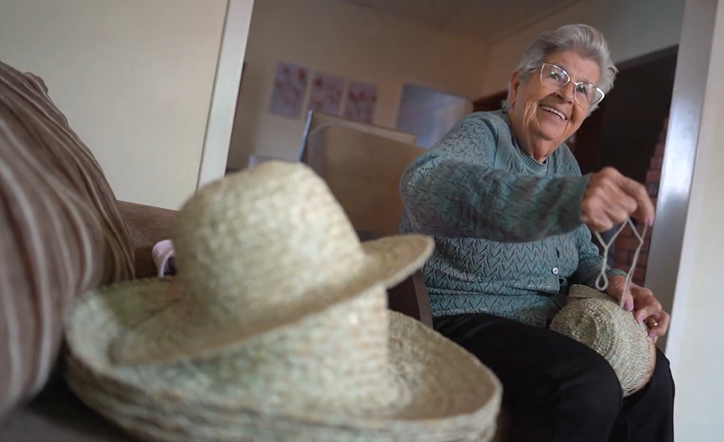 Pedra dos Santos Mota produzindo chapéu de butiá. Foto: Vale Agrícola/YouTube