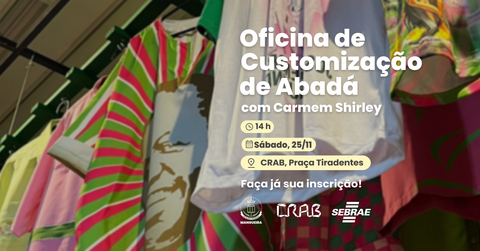 Seja bem-vindo(a) à Oficina de Customização de Abadá, um evento baseado na exposição da Artesania Ancestral nos 95 anos de Mangueira que busca explorar a criatividade de forma única e divertida!